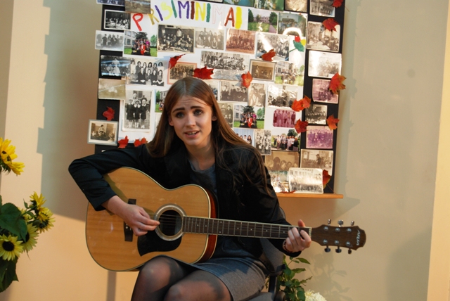 Skambučio skambėjimas paskelbė renginio pradžią. Violeta Vilniškytė skambant gitaros akordams sudainavo dainą „Mano senai mokyklai“.