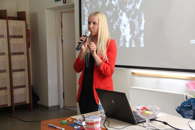 Susirinkusiems kalbėta apie burnos ir dantų protezų priežiūrą. Lektorė teigė, kad burnos ligos dažnai įtakoja širdies veiklą, sergantiems cukriniu diabetu gali būti sunkiau reguliuoti cukraus kiekį kraujyje. Prasta dantų priežiūra lemia dantų akmenų atsiradimą, o tai sukelia gingvitą arba periodontitą. Šios ligos simptomai – padidėjęs dantenų kraujavimas, nemalonus burnos kvapas. Esant dantenų uždegimui, t. y. gingvitui, reikia laiku kreiptis į stomatologą, tuomet galima šiam procesui užkirsti kelią. L. Dvarionaitė pastebėjo, kad pacientai dažnai kreipiasi dėl dantų jautrumo. Tuomet ji patarė vartoti dantų jautrumą mažinančią dantų pastą. Visiems pravartu buvo sužinoti, kaip reikėtų taisyklingai valyti dantis. Lektorė pademonstravo tam labiausiai tinkamus dantų valymo šepetėlius bei tarpdančių valymo siūlus.