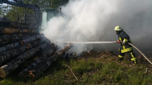 Ketvirtadienio pavakarę Vilkyčiuose užsiliepsnojo miško traktorius. Gaisro gesinti atskubėjo Saugų ir Šilutės ugniagesiai.