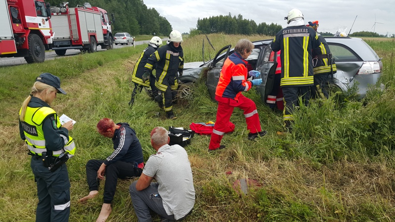 Apvirtusį automobilį pamatė pro šalį važiavę vairuotojai ir iškvietė medikus. Iki atvykstant gelbėtojams žmonės apvirtusį ant stogo automobilį atvertė. Visi 5 avariją patyrusio automobilio keleiviai, tarp kurių – ir viena moteris, su įvairiais sužeidimais išgabenti į ligoninę.