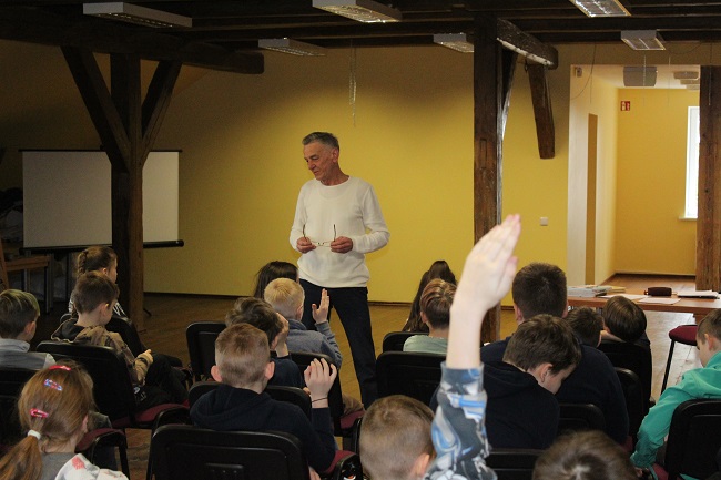 Į susitikimą su mylimu vaikų rašytoju, poetu tauragiškiu Jonu Jakštaičiu-Šapeliu sugužėjo gausus būrys jaunųjų skaitytojų. Renginyje dalyvavo Pagėgių savivaldybės Vilkyškių Johaneso Bobrovskio gimnazijos 2, 3 bei 4 klasės mokiniai su mokytojomis Jūrate Lalaite, Jūrate Kriaučiūniene ir Egidija Jurkšaitiene.