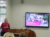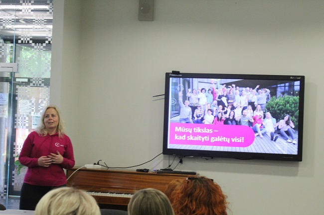 Viešnios iš audiosensorinės bibliotekos išsamiai ir informatyviai, pasitelkusios vaizdinę medžiagą, susirinkusiuosius supažindino su unikalia galimybe – nemokamai naudotis skaitmeninių leidinių fondu, kurį sudaro tūkstančiai populiariausių grožinės literatūros knygų, žurnalų, taipogi –savišvietai ir studijoms skirti leidiniai, knygos vaikams, skaitmeniniai leidiniai Brailio raštu, filmai ir spektakliai su garsiniu vaizdavimu bei kiti kūriniai. Taip pat informavo, jog tam, kad žmogus galėtų naudotis šia nemokama paslauga bibliotekose, reikalinga regos, judėjimo, skaitymo, kalbos sutrikimą ar asmens globos teisę patvirtinanti medikų pažyma – oficialus dokumentas, kuriame nurodyta paslaugos naudotojo būklė ar įrašytos ligos, dėl kurios nėra galimybės skaityti įprastai, kodas.